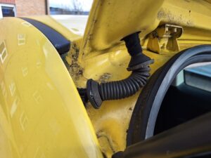 全部接続できたら、最後はウォッシャー用のパイプを切断してそれをキット用のものに繋げます。ちょととコツがいる感じで、パイプを引っ張って蛇腹部分を広げながら、キット側の白いパイプを押し込むとうまく行くかと思います。